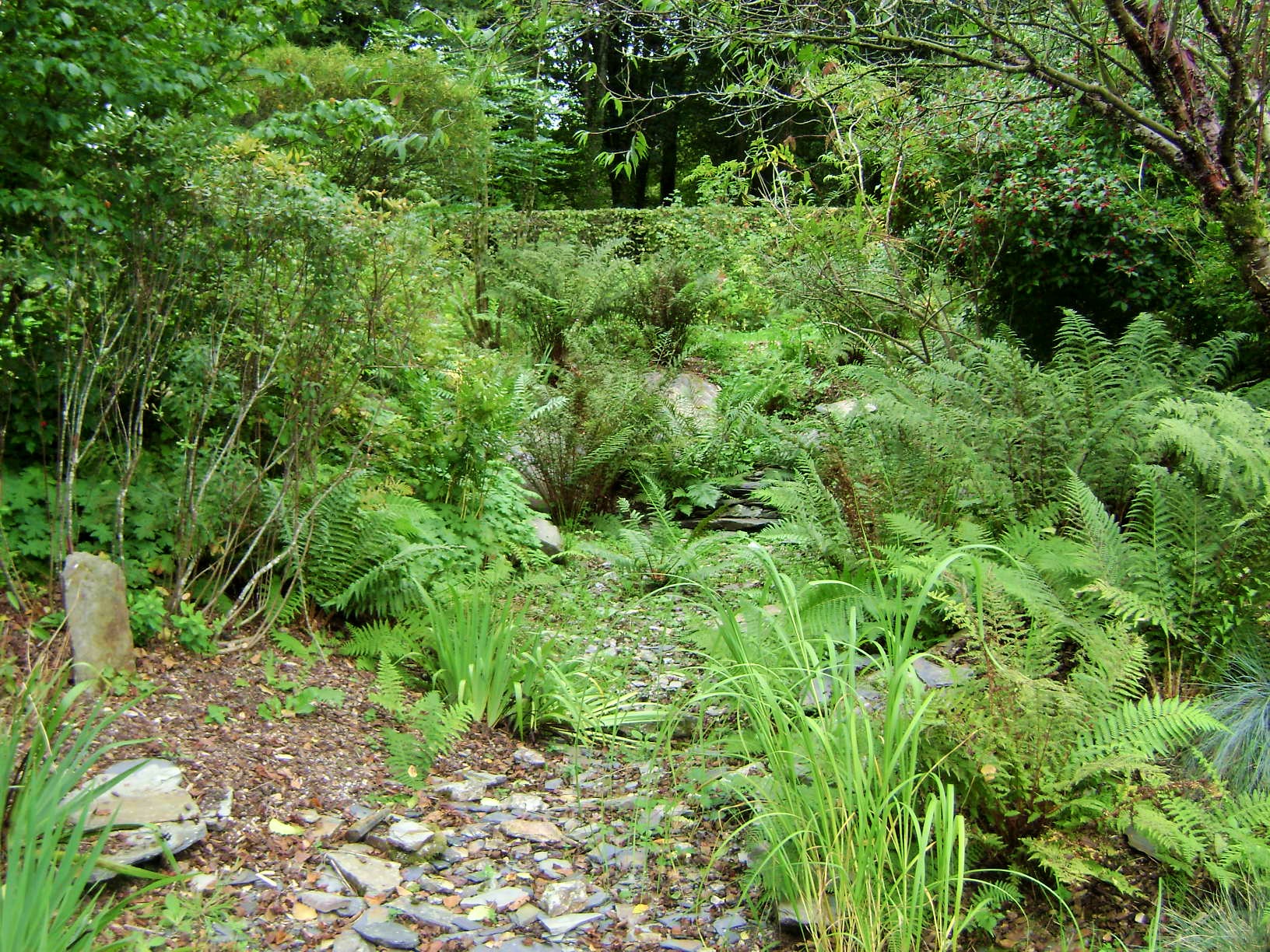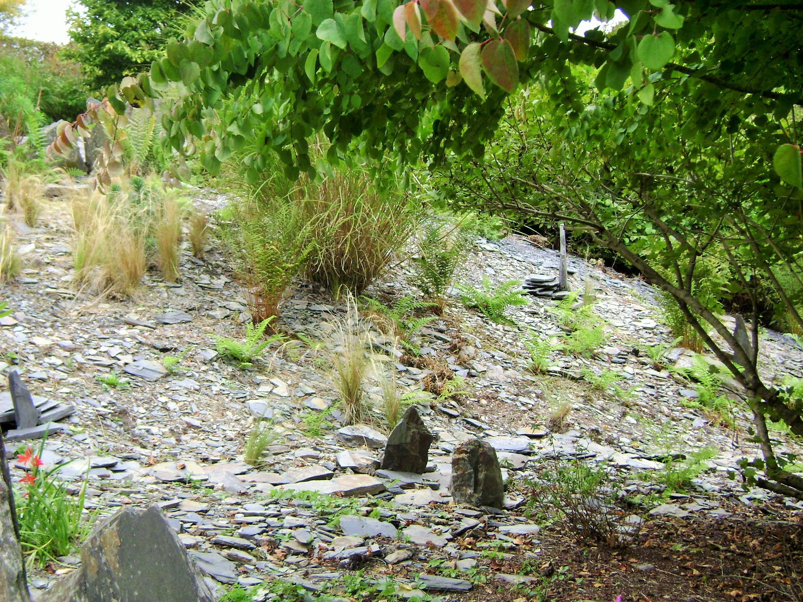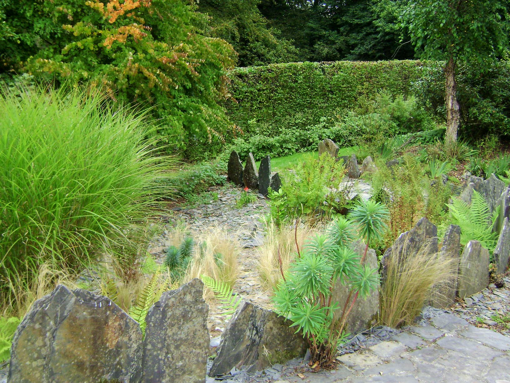 Past the pavilion is the Japanese rock garden with plantings and rock river beds for the stream.
