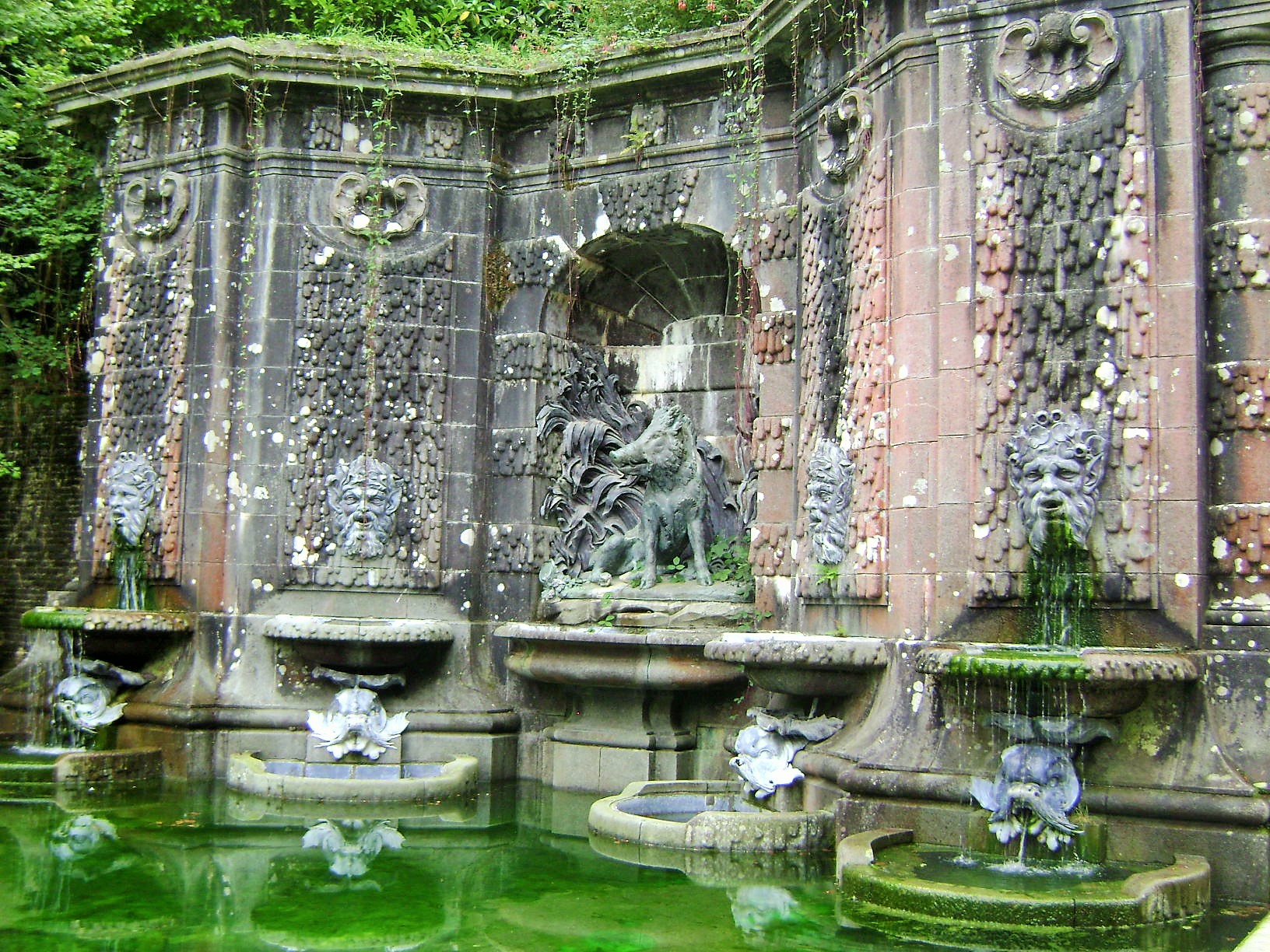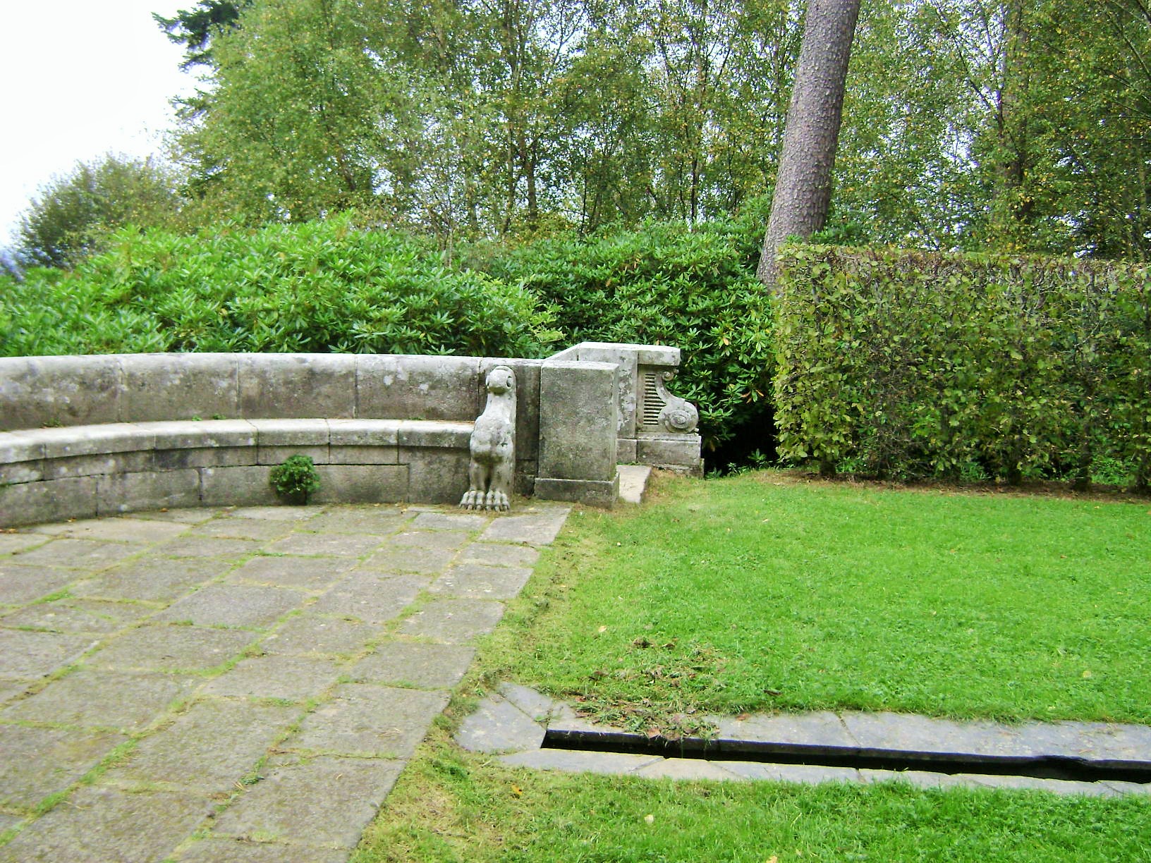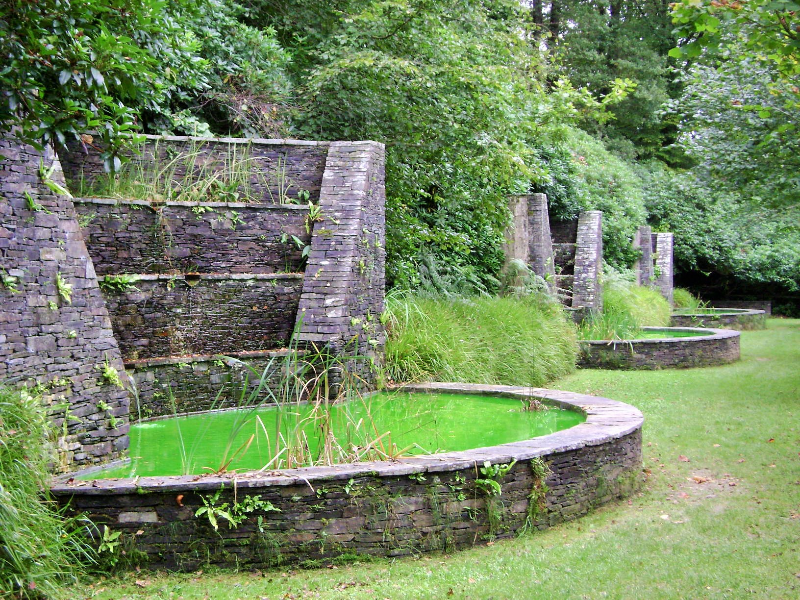 In this post, I am featuring one of my favorites of the Trevarez gardens, the Italian garden. It features a pond and grotto, a row of unusual fountains, and a lawn all along the side with a small water canal leading to the stairs going to the Romantic Garden. The Italian Garden is just to the side of the castle.