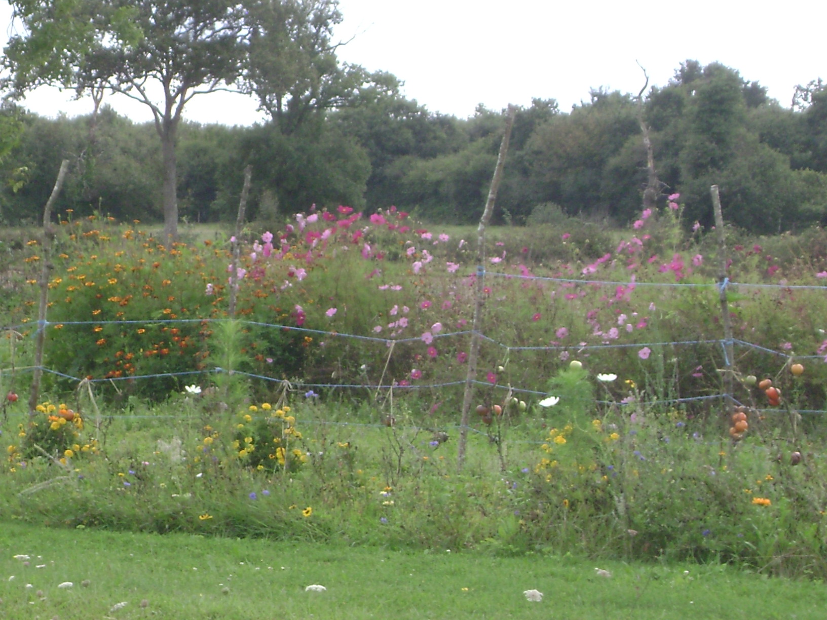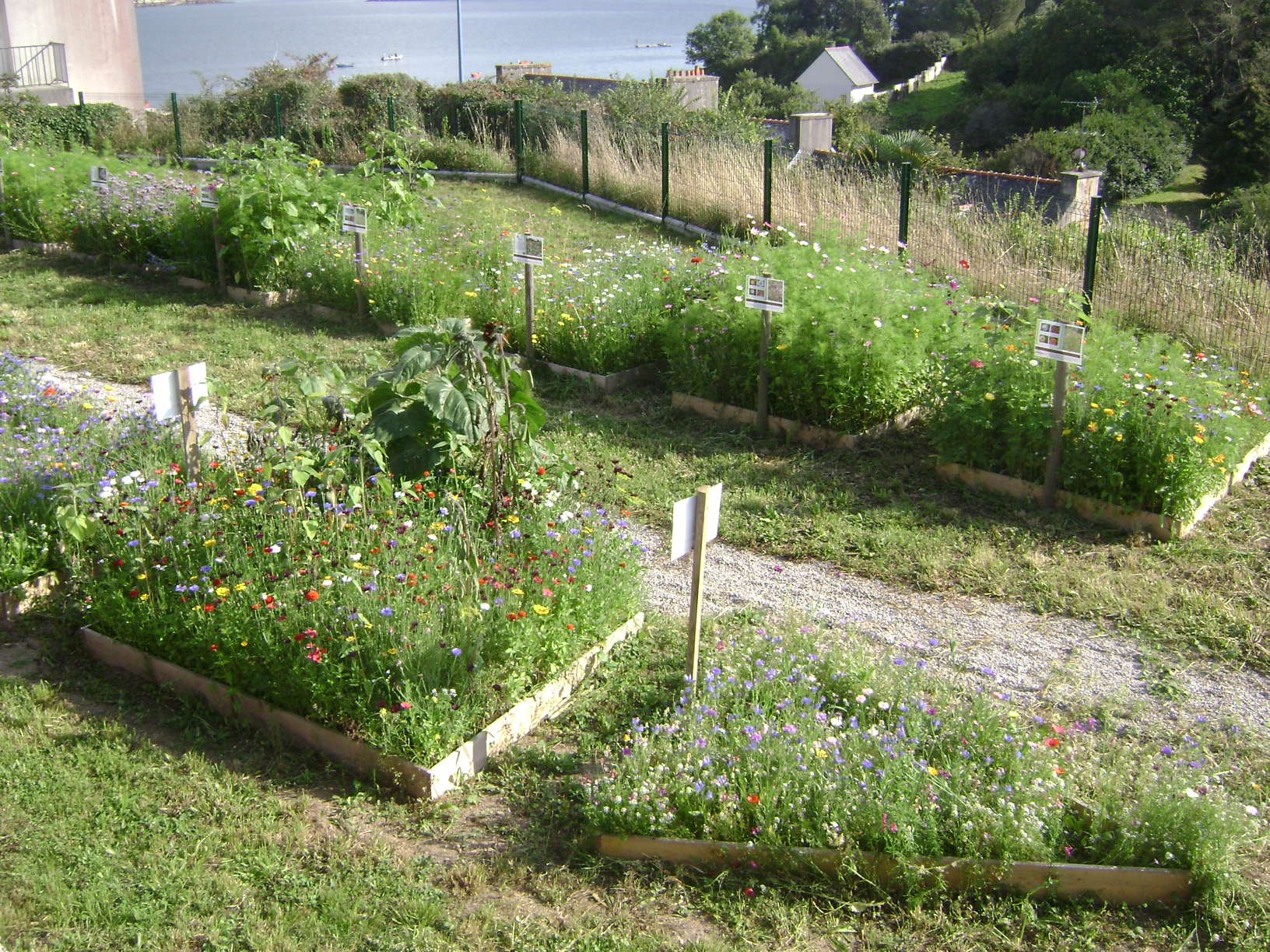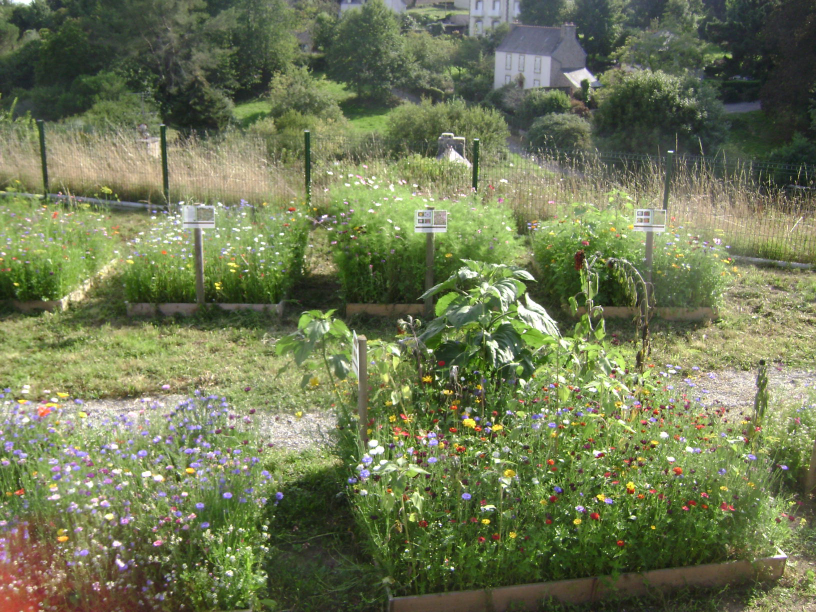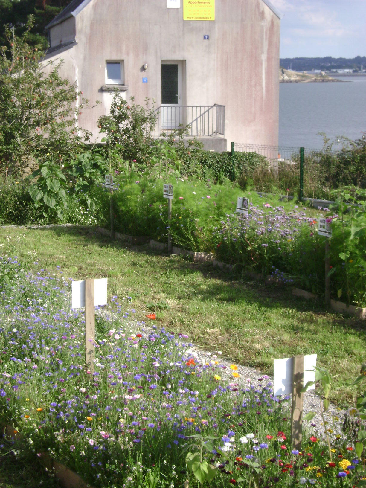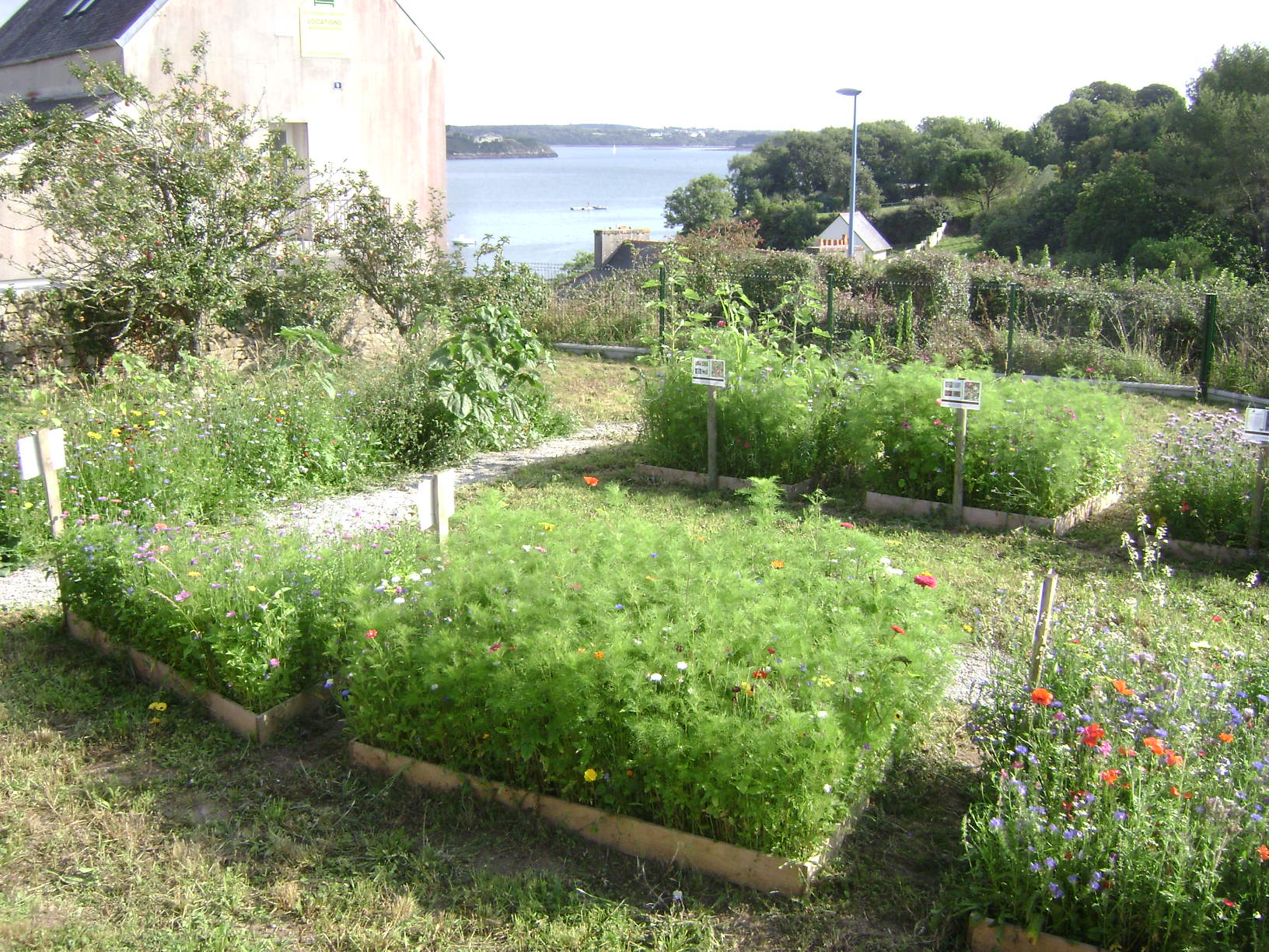 I happened upon this lovely seaside garden in the village of Roscanvel. The plants and flowers in the raised beds are all carefully labeled. The beds are arranged in a grid pattern with grapevines and apple trees growing along the back wall. When the vegetables in a raised bed have been harvested, wildflowers are planted as cover crops. The ocean view of course is beautiful!