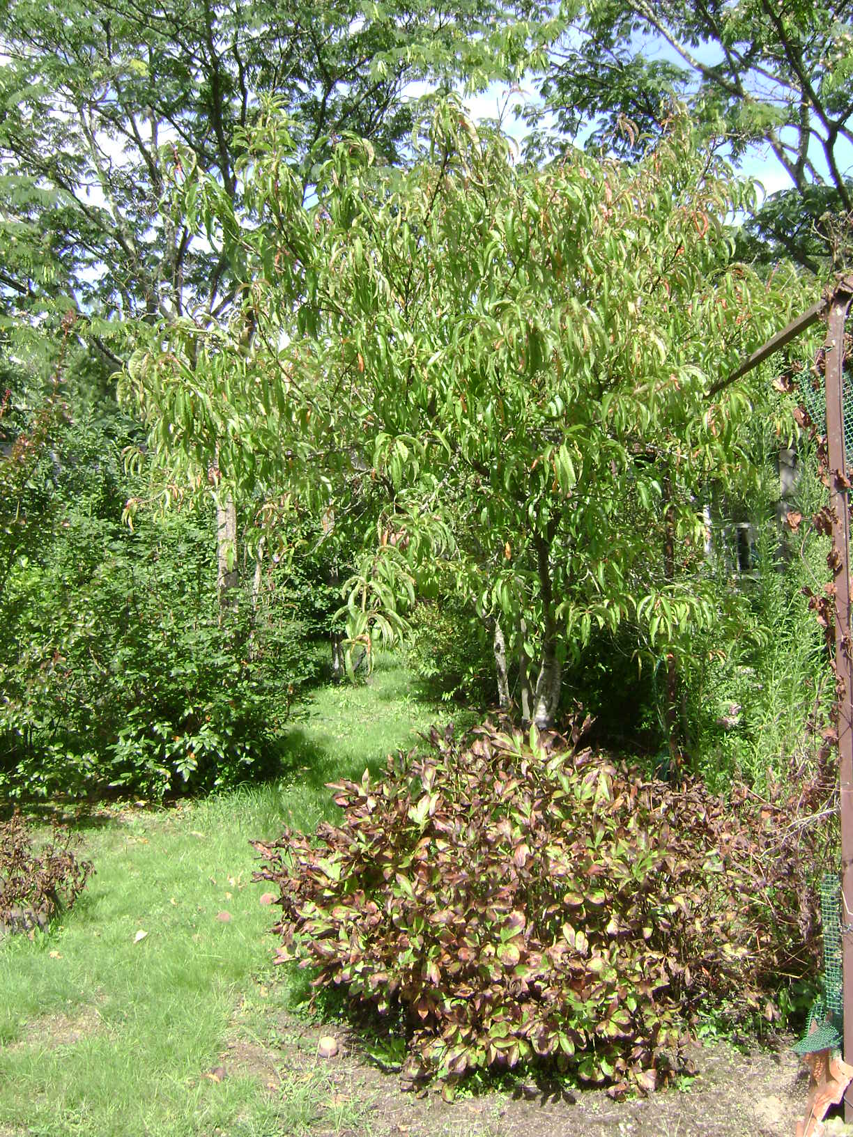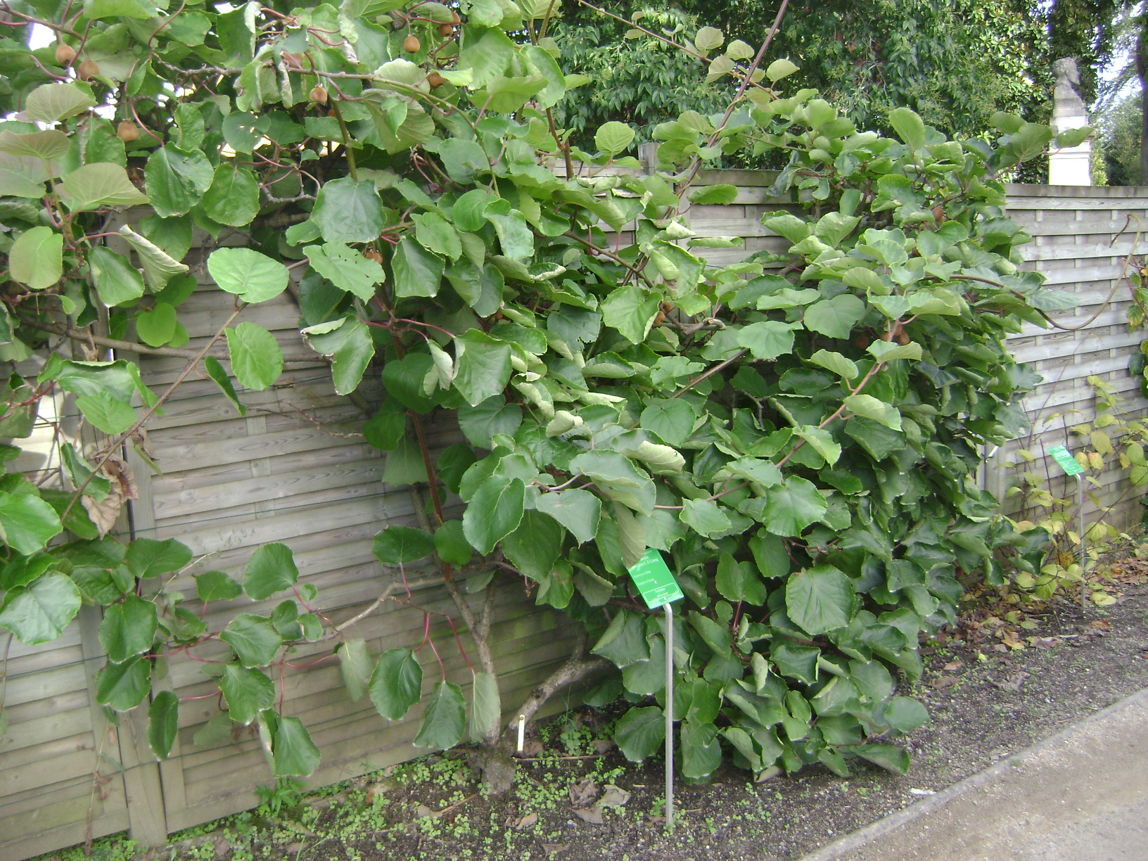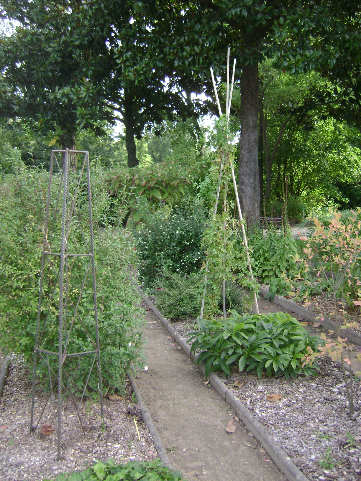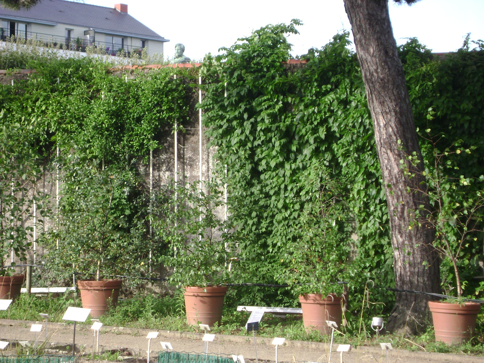 The edge of the scientific garden features espaliered trees and vines such as this kiwi vine (actinidia)
