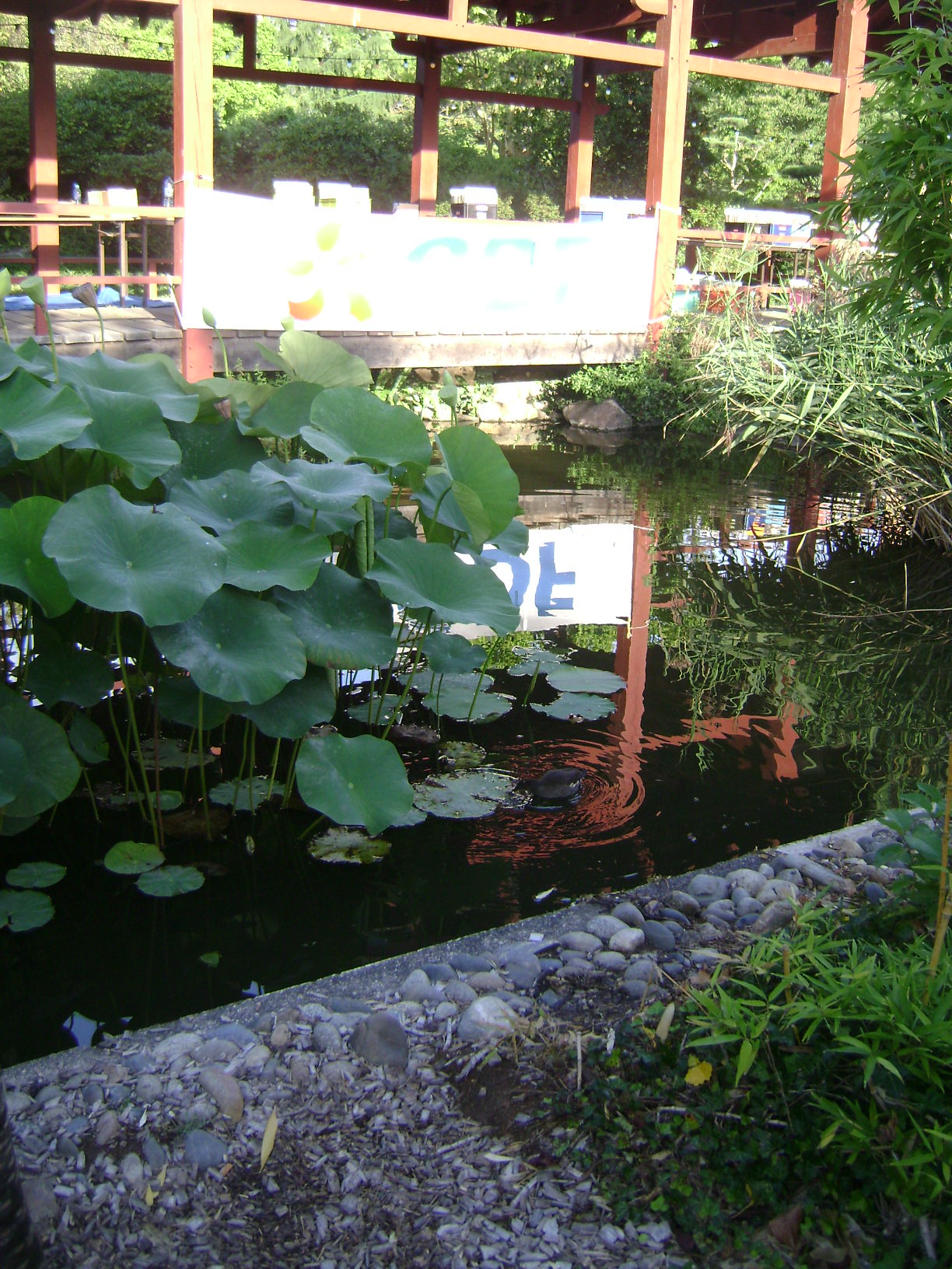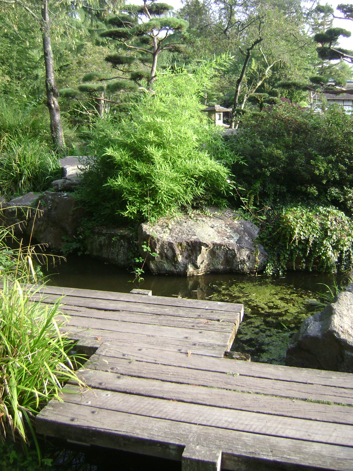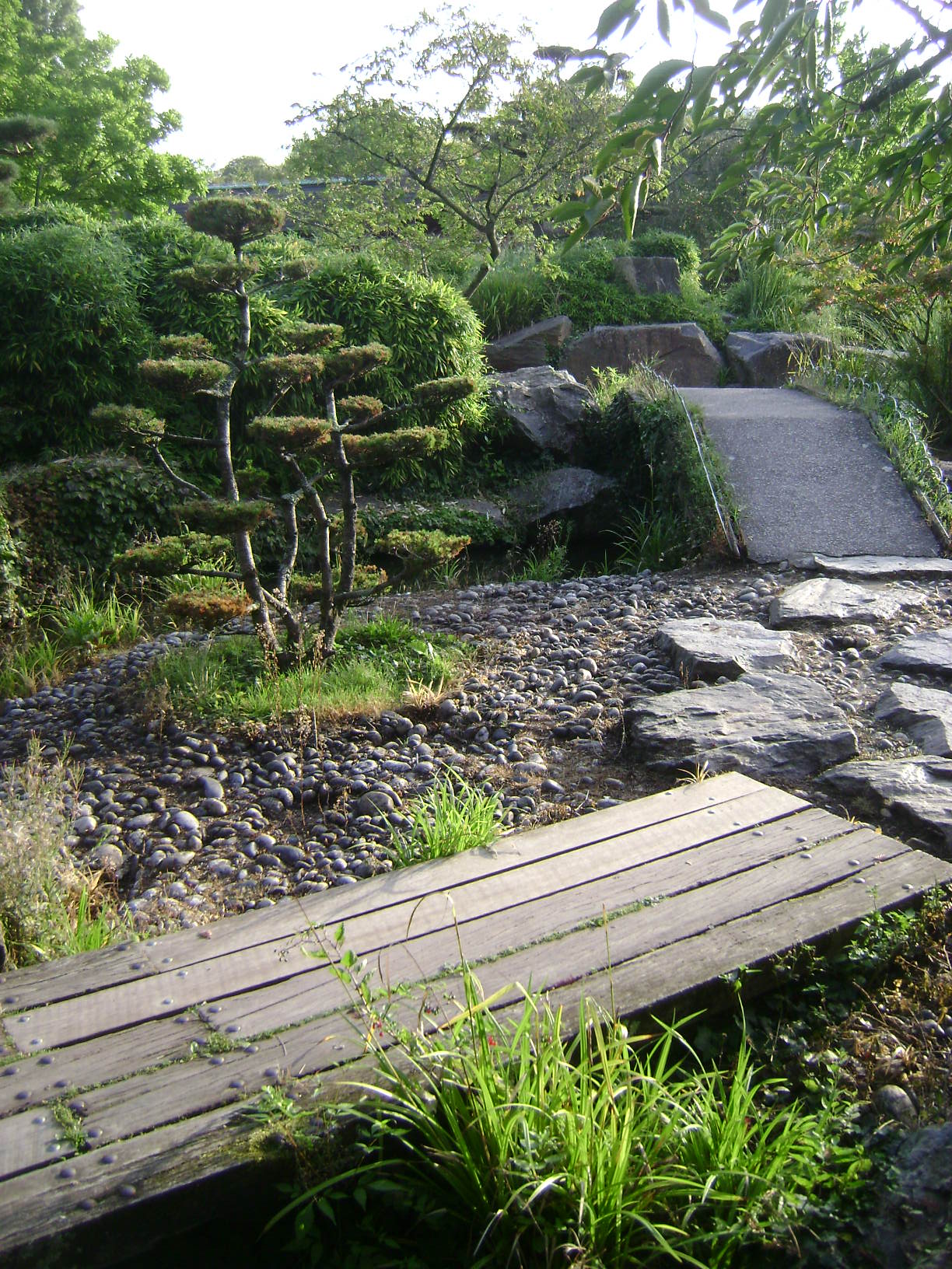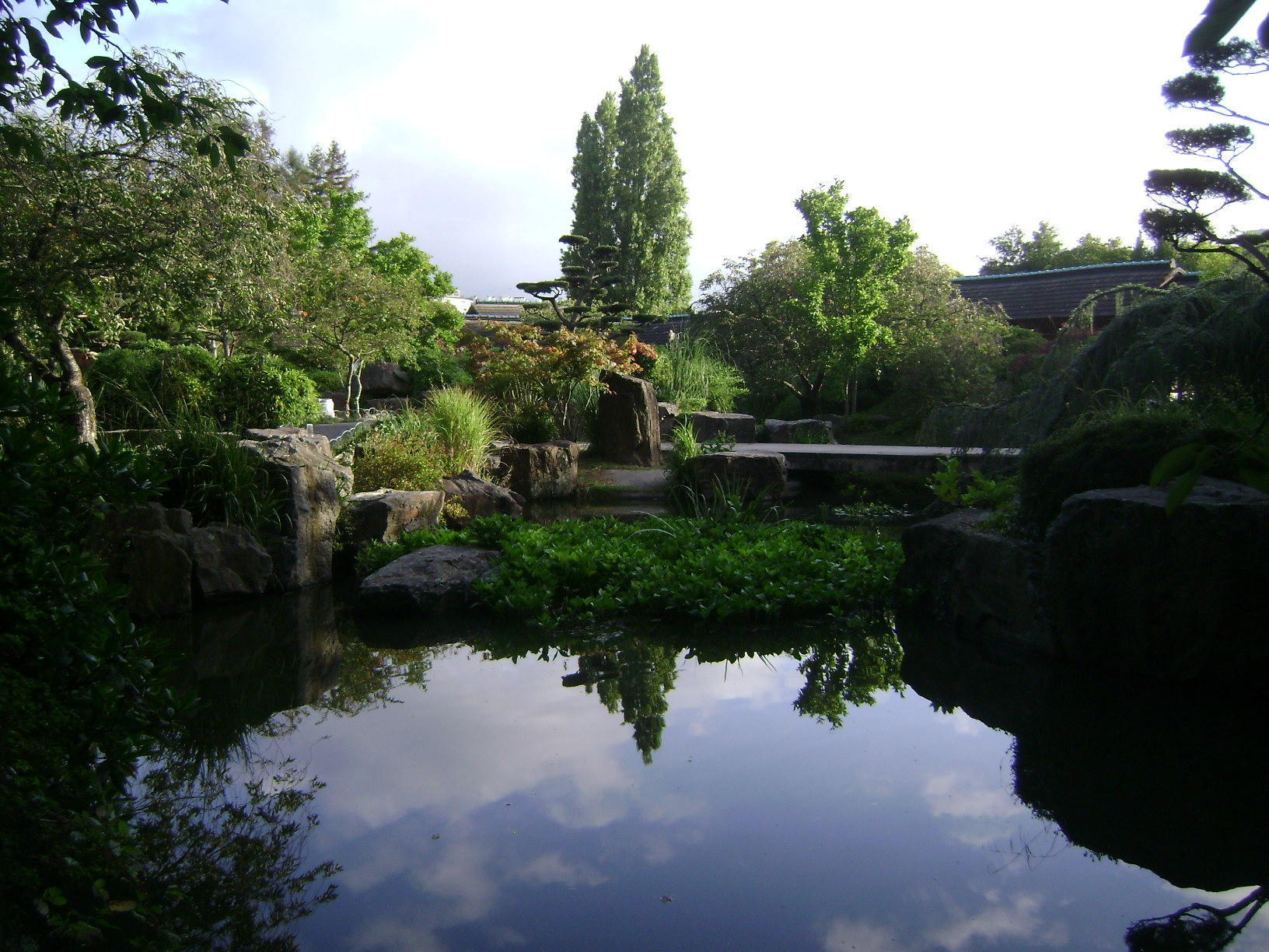 The island of Versailles on the Erdre river in Nantes was man made in 1831 and originally used by naval builders. It was transformed in 1983 into a Japanese garden with three Japanese inspired buildings, one a café and the others used for exhibits about the river and its environment.