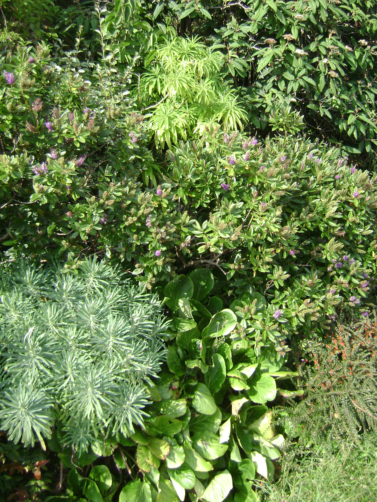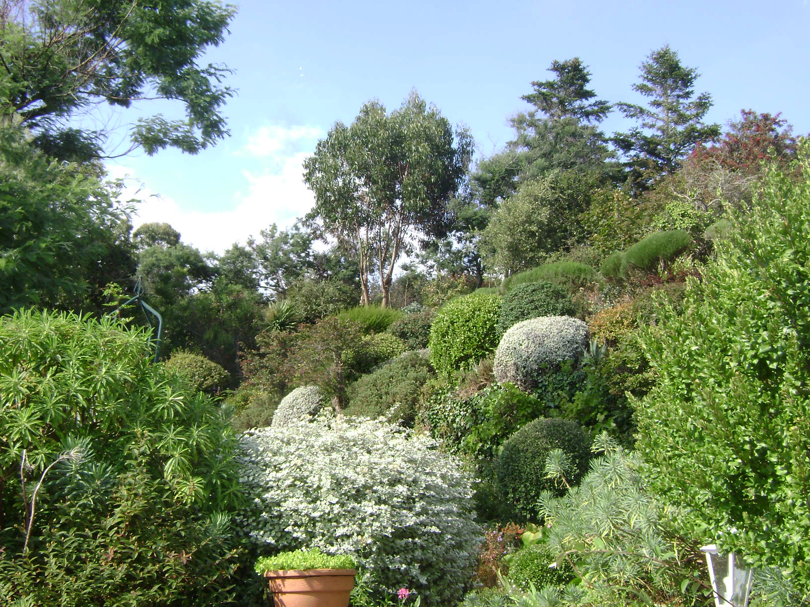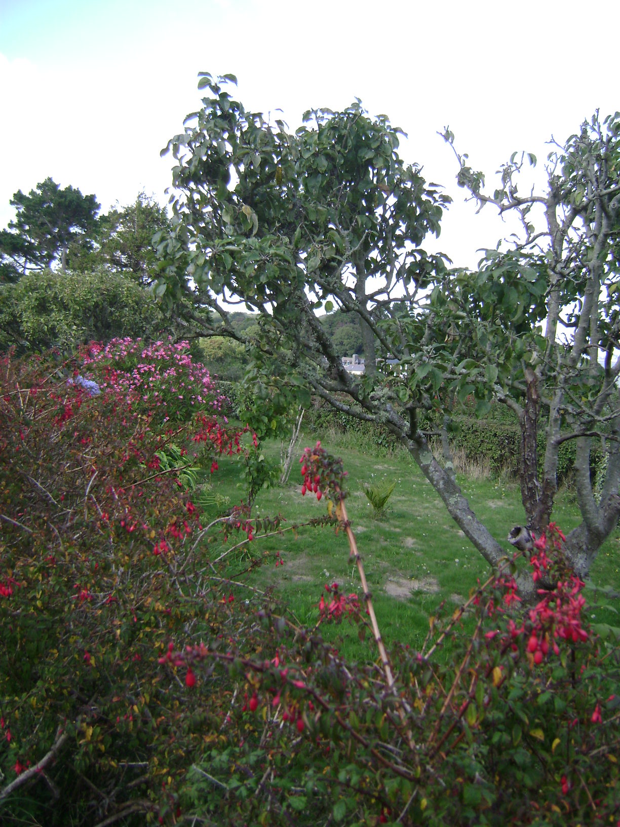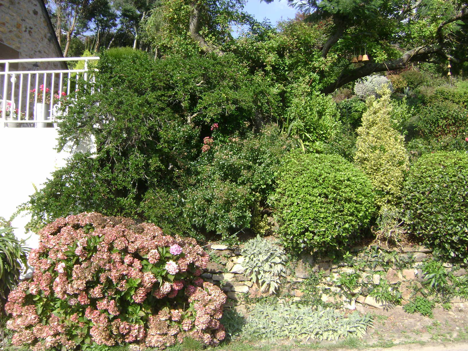 If I had visited this garden somewhere in the countryside, I would merely have thought it was a pretty garden like many others. What makes this one truly exceptional is its location on the coast of Roscanvel in Bittany. It is on a narrow stretch of land overlooking the ocean and the edge of the garden plunges straight down below to the water.