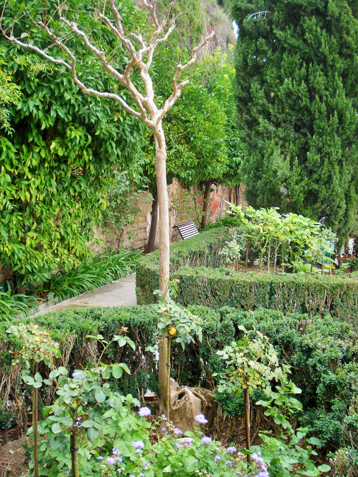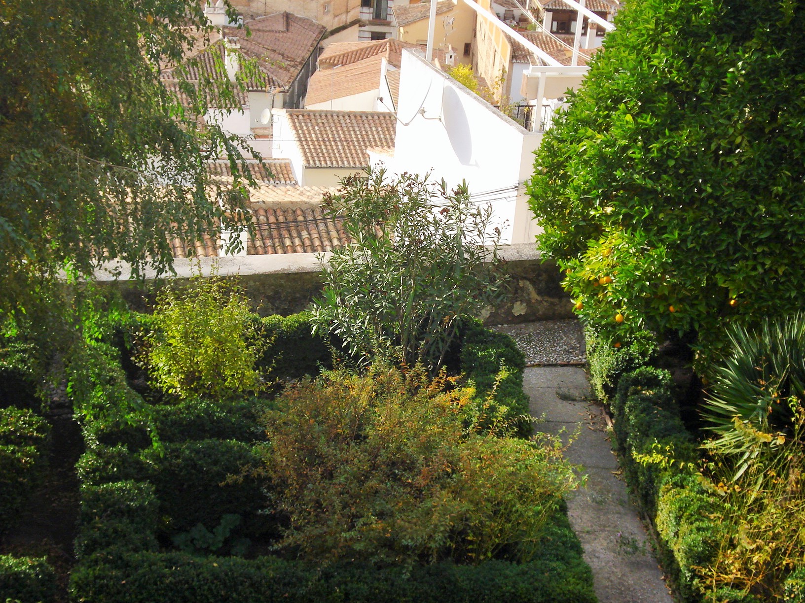 The garden proper is called Jardin de los Adarves. It is a long and narrow garden on the side of the Alcazaba overlooking the city.