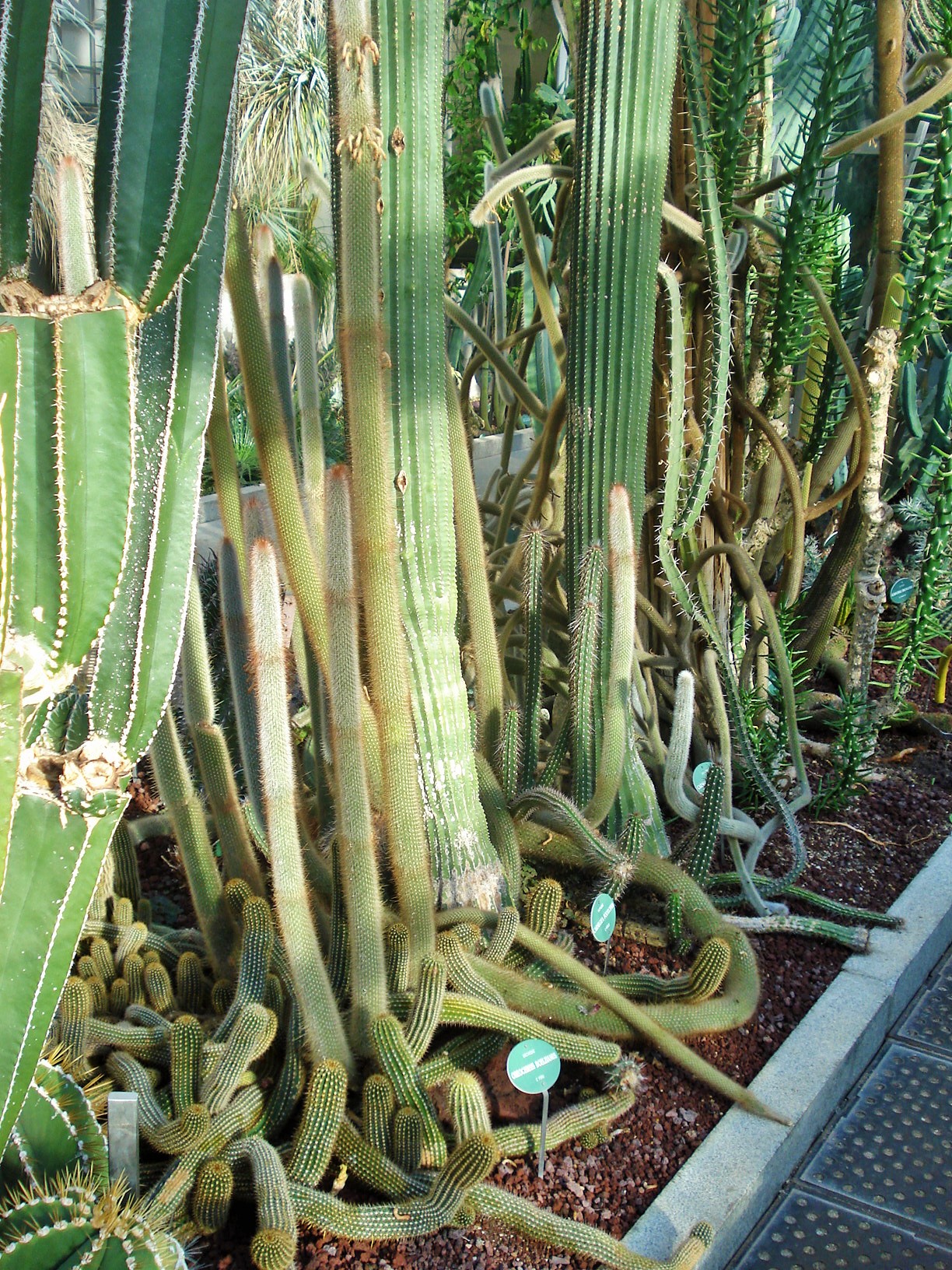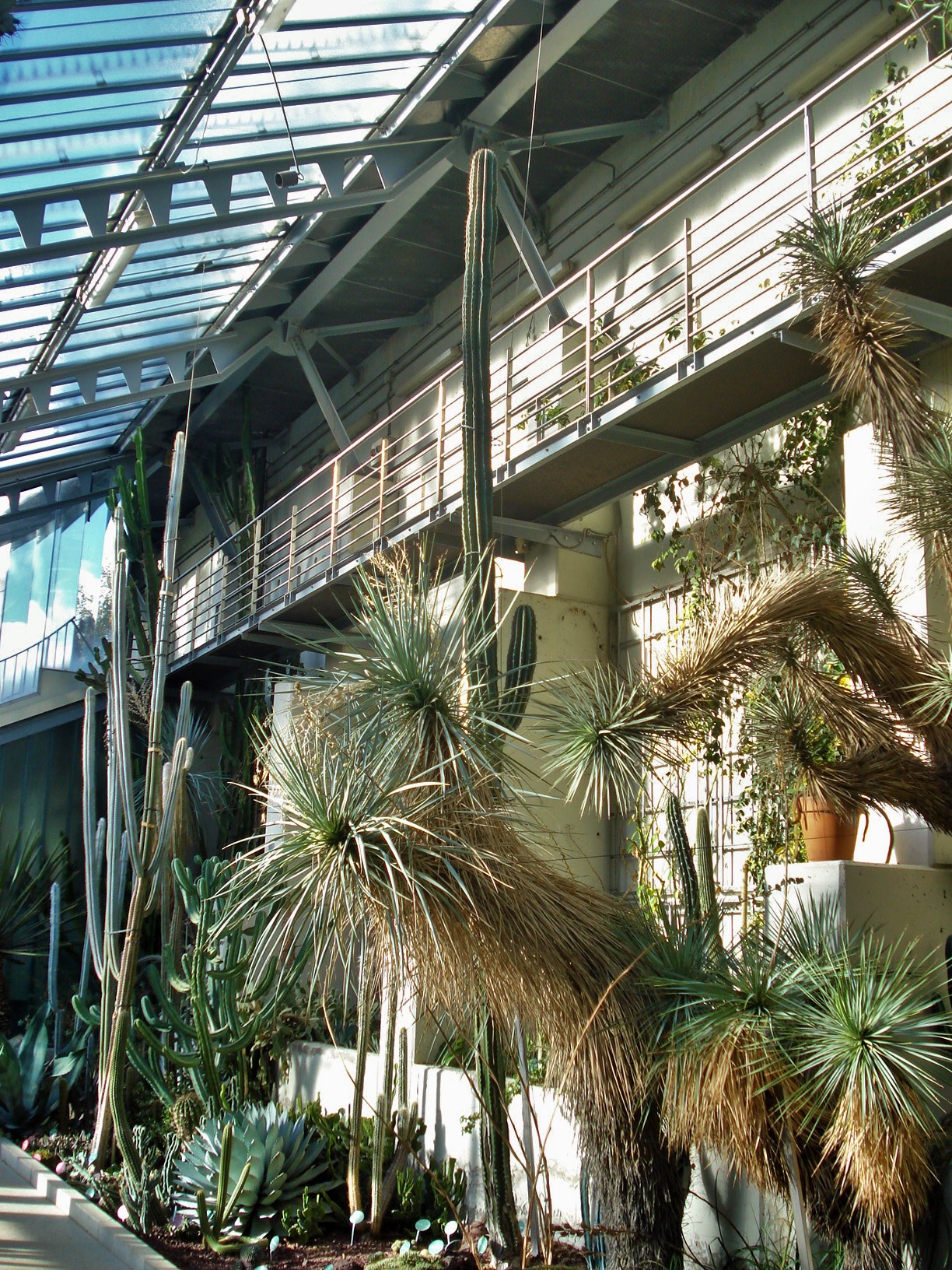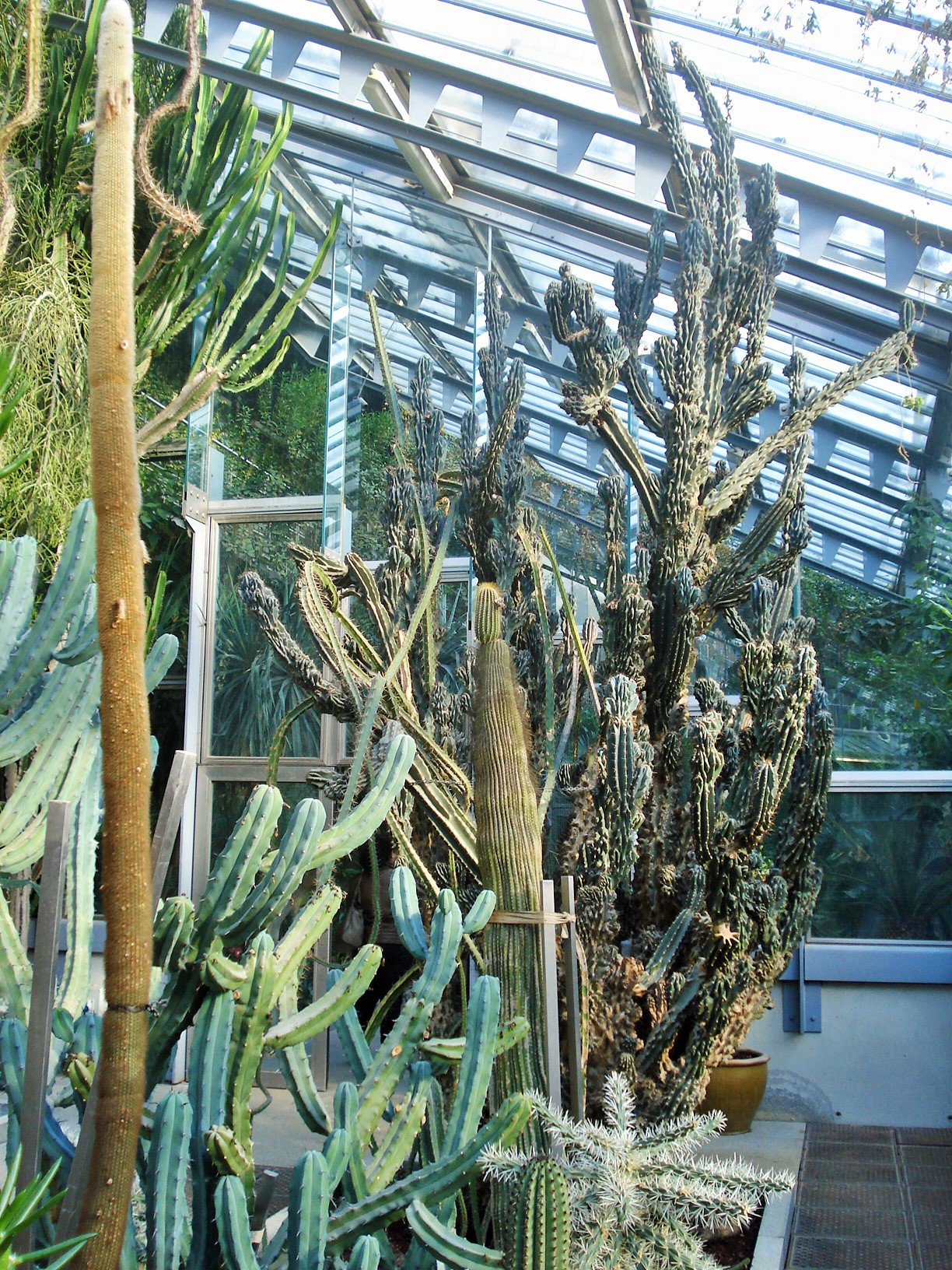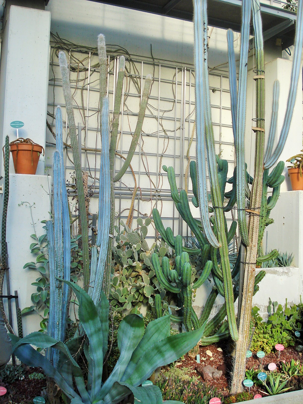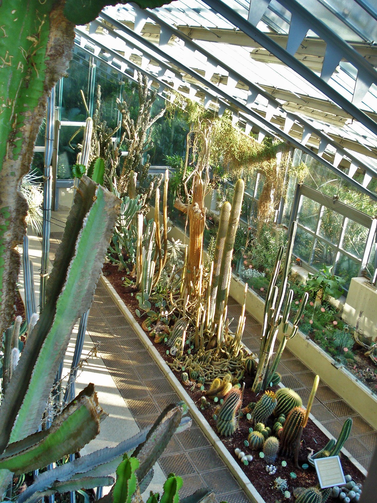 With such large and varied gardens, it would be impossible to cover it all in one post. In this post, I am featuring one of the more modern greenhouses, housing the gardens’ succulents collection. Note the use of vertical gardening on the very tall interior walls, as well as the catwalk along the top joining this greenhouse with the subtropical/tropical one.