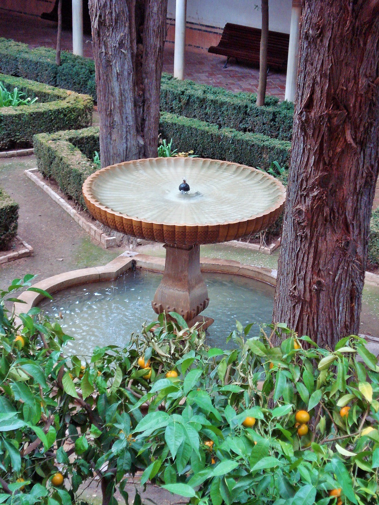 Granada, in southern Spain,  is of course most famous for the Alhambra and Generalife gardens.  The Alcazaba was built as a fortress and is the oldest part of the Alhambra. The gardens of the Alcazaba are small but offer sweeping views of the city, as well as fountains and other features typically found in Moorish style gardens.