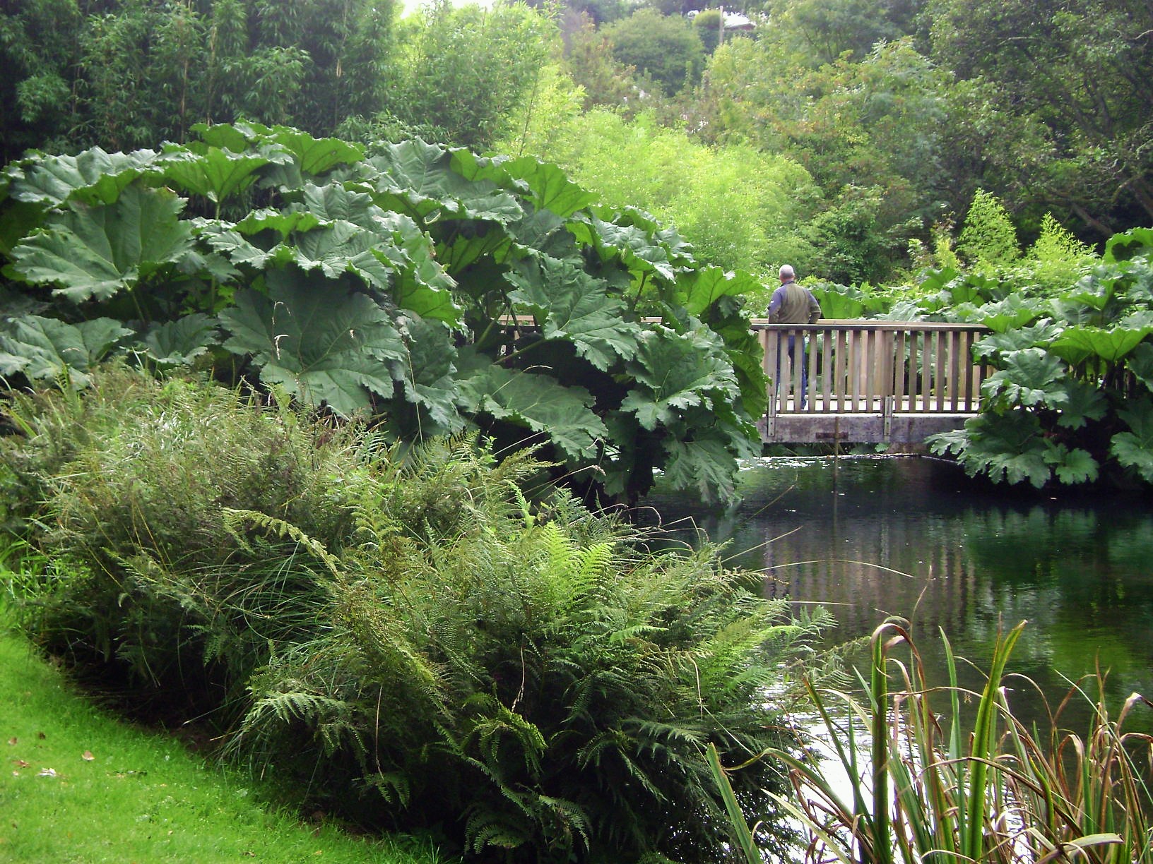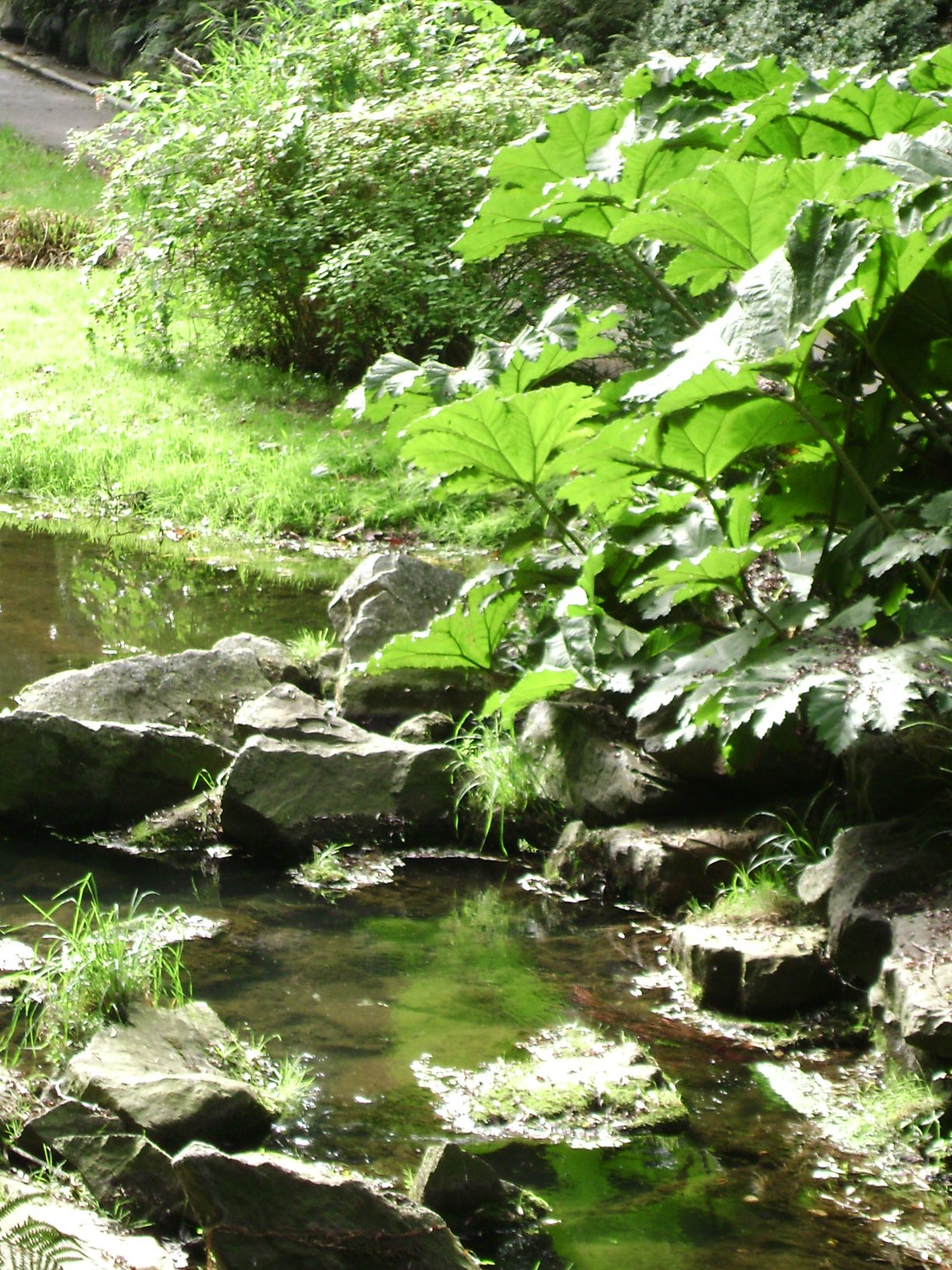In this post, I am featuring the park. Common to both areas is the stream and therefore an abundance of water features. The park has the feel of a woodland garden, with more greenery, bamboos, mature trees, gunnera and the likes, than landscaped borders and flowers. The choice of plants as well as the use of rocky elements and bridges give it very much the feel of a Japanese garden, in certain areas of the park in particular.